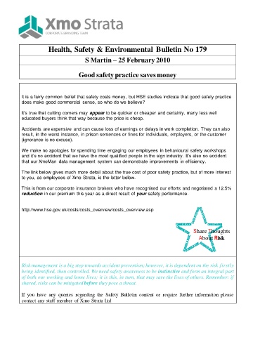 Health, Safety & Environmental Bulletin No 179