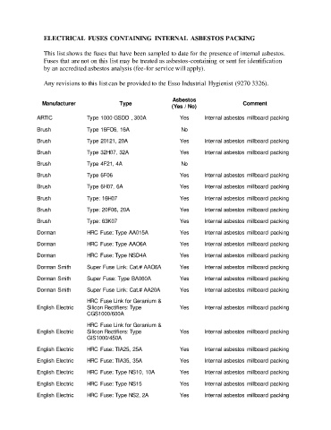 ELECTRICAL FUSES CONTAINING INTERNAL ASBESTOS PACKING