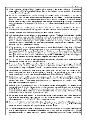vests & adequate footwear. Subcontractors carrying out works i.e. scaffolders etc must be given this
