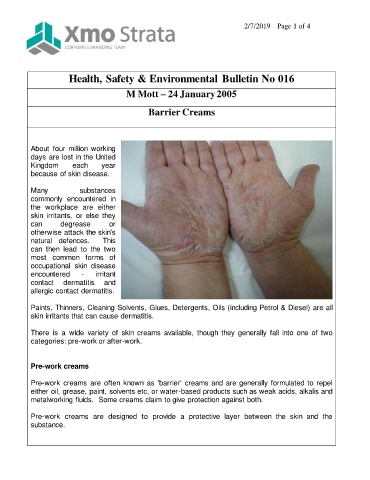 Pre-work creams are often known as 'barrier' creams and are generally formulated to repel