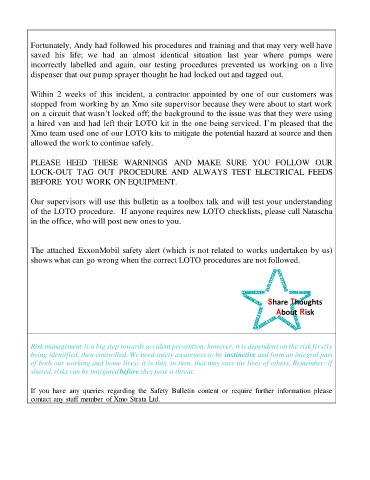 If you have any queries regarding the Safety Bulletin content or require further information please