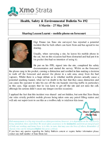 being identified, then controlled. We need safety awareness to be instinctive and form an integral part