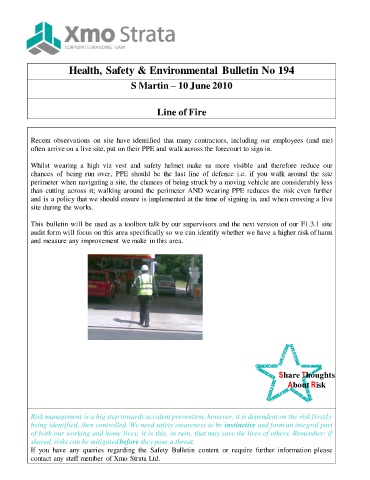 This bulletin will be used as a toolbox talk by our supervisors and the next version of our F1.3.1 site