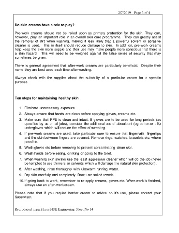 cleaner is used. This in itself should reduce damage to skin. In addition, pre-work creams