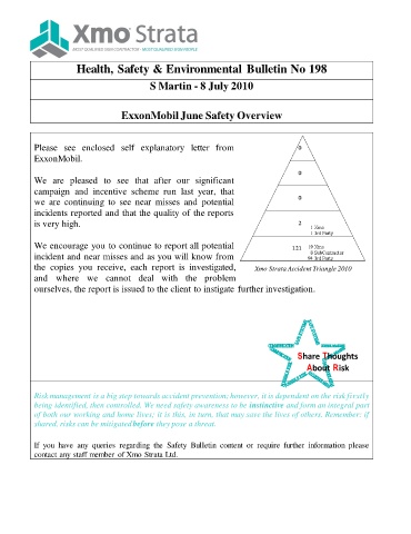 the copies you receive, each report is investigated, Xmo Strata Accident Triangle 2010