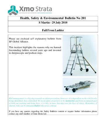 If you have any queries regarding the Safety Bulletin content or require further information please