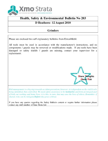 If you have any queries regarding the Safety Bulletin content or require further information please
