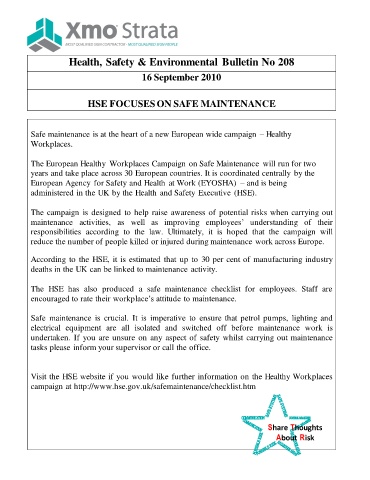 Health, Safety & Environmental Bulletin No 208