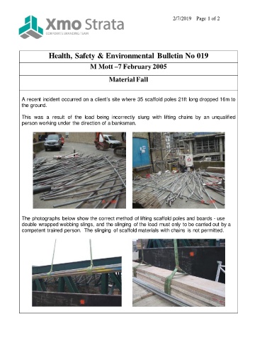 competent trained person. The slinging of scaffold materials with chains is not permitted.