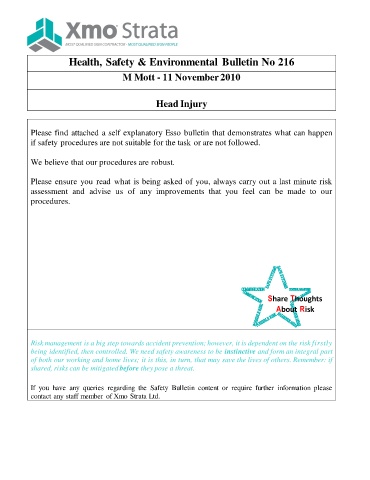 If you have any queries regarding the Safety Bulletin content or require further information please