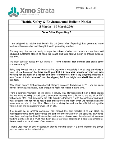 Health, Safety & Environmental Bulletin No 021