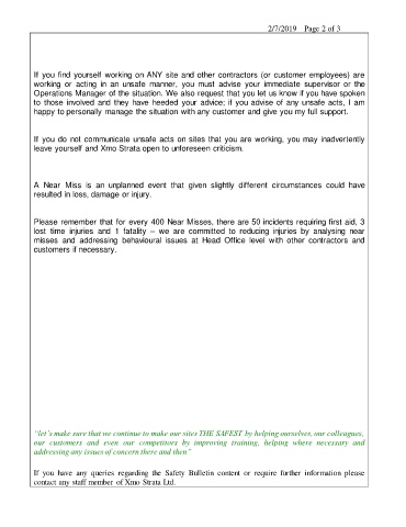 to those involved and they have heeded your advice; if you advise of any unsafe acts, I am