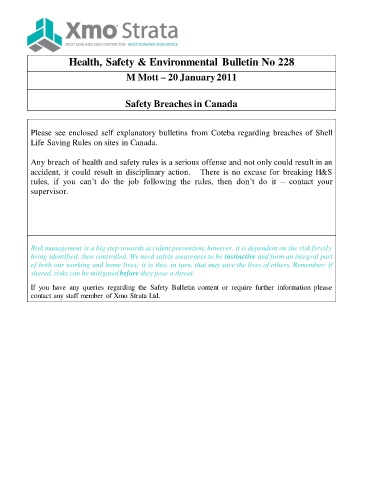 Health, Safety & Environmental Bulletin No 228