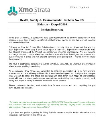 If you have any queries regarding the Safety Bulletin content or require further information please