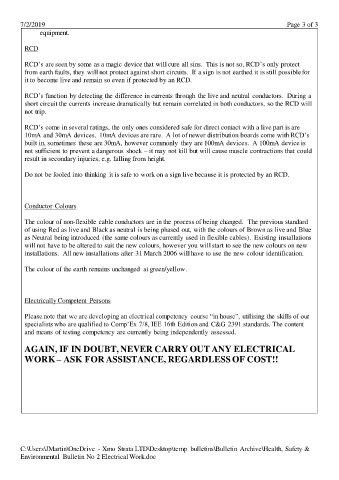 Do not be fooled into thinking it is safe to work on a sign live because it is protected by an RCD.
