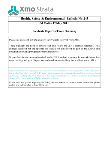 Health, Safety & Environmental Bulletin No 245