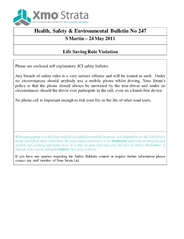 If you have any queries regarding the Safety Bulletin content or require further information please
