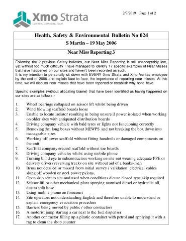 Following the 2 previous Safety bulletins, our Near Miss Reporting is still unacceptably low,