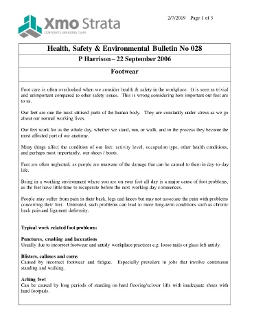Health, Safety & Environmental Bulletin No 028