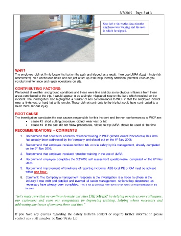 incident. The investigation also highlighted a number of non conformances to WCP in that the employee did not