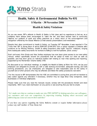 As you are aware, BP’s attitude to Health & Safety is first class and my experience is that we, as a