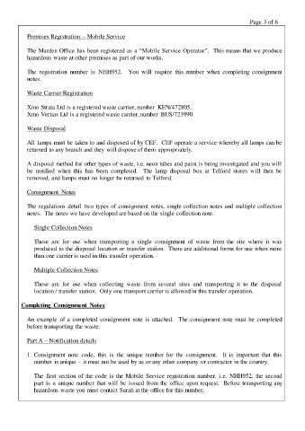 An example of a completed consignment note is attached. The consignment note must be completed