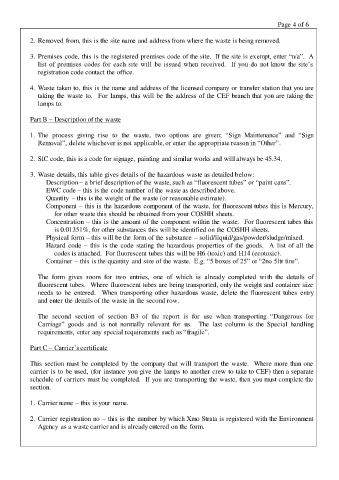schedule of carriers must be completed. If you are transporting the waste, then you must complete the