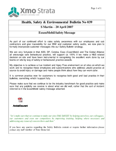 If you have any queries regarding the Safety Bulletin content or require further information please